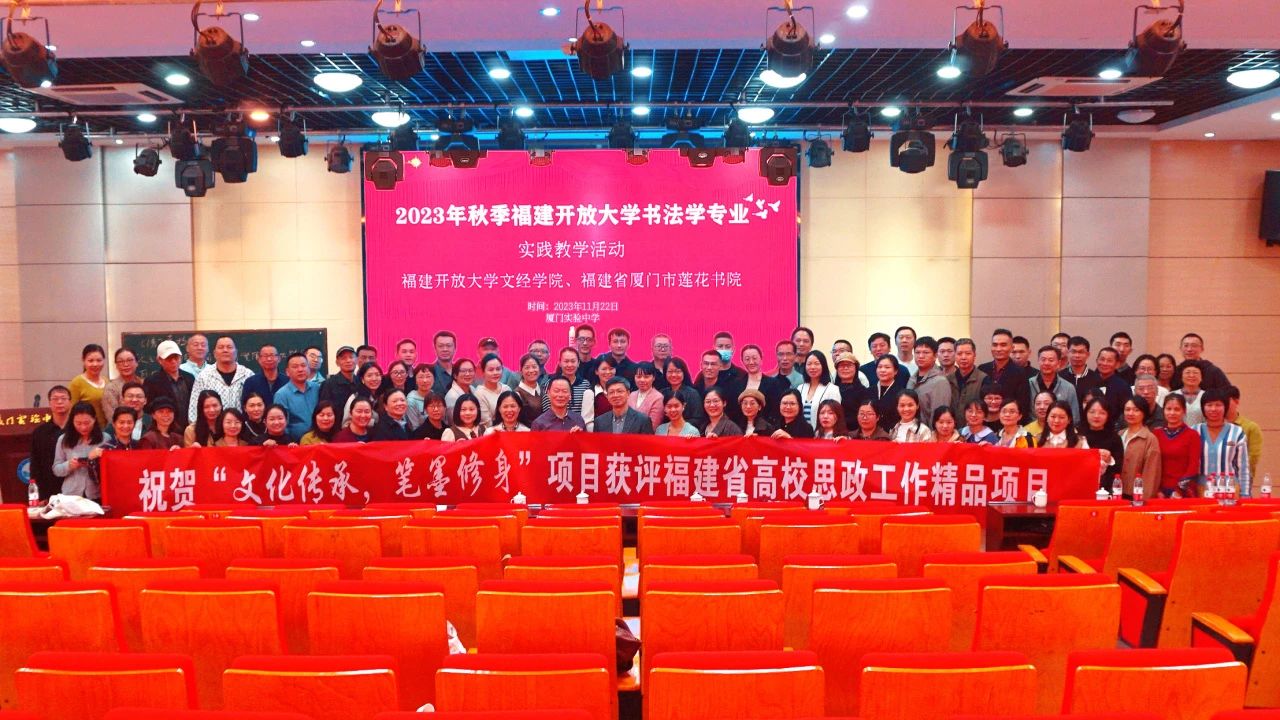 初冬的鹭岛阳光明媚,温暖宜人。为深入学习贯彻习近平文化思想,进一步传承和弘扬中华优秀传统文化,厚植学生爱国情怀,提升学生实践水平,推动形成生动鲜活的专业美育新气象、新格局,近日,以“传承书法艺术,赓续文化基因”为主题的首次福建省办学体系书法学专业实践教学活动在厦门举行,福建开放大学党委副书记马成斌应邀出席活动,来自福建开放大学文经学院、漳州开放大学、泉州开放大学、漳浦开放大学、龙海开放大学的书法学专业师生近百人参加。
