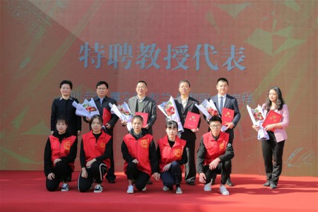 翁雪莲向国家开放大学教务部部长叶志宏,新浪微博运营副总经理董文俊,清华大学博导、新媒体研究中心主任彭兰,浙江省网络视听协会常务副会长钱黎明、中国城市网盟会长胡宝祥等首批特聘教授代表颁发聘书。
