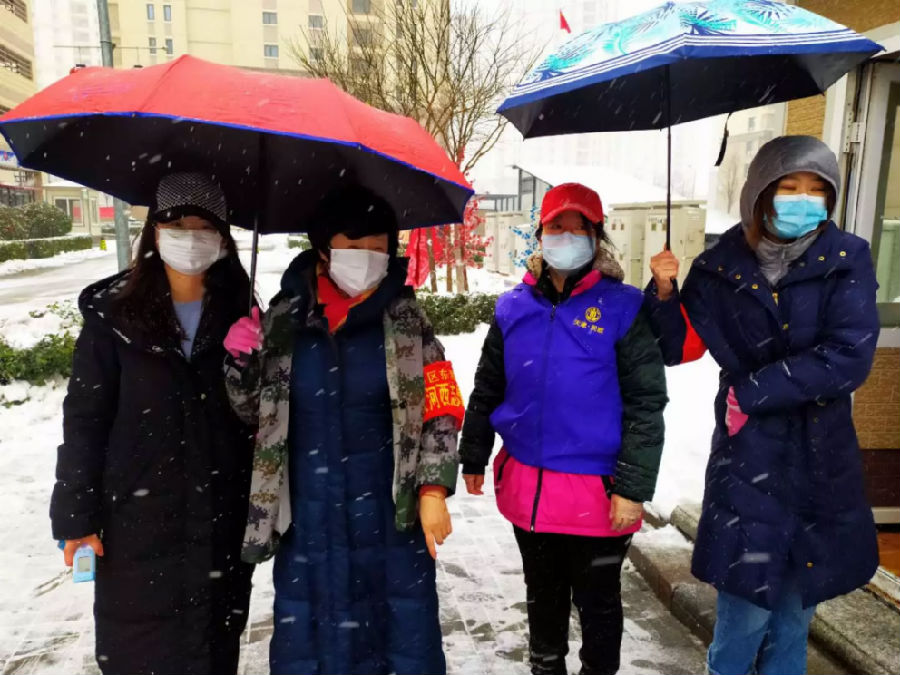 无论风里雪里,哪怕全身已经冻透,她一直坚守在社区出入口,为居民测量体温,为来津返津人员办理登记,严防死守,牢筑社区防疫屏障!