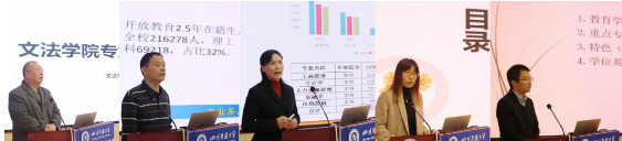 文法学院、经济管理学院、工程技术学院、农林卫生学院、教育学院分别作招生专业剖析汇报,聚焦学院师资队伍、所属专业招生现状、各专业招生数量增减变化、学院重点专业、特色专业及新增专业、共建共享专业建设等情况,指出存在问题,剖析形成原因,并提出了下一步的工作思路。