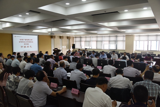 6月13日上午,甘肃电大分校校长工作站站长培训班开班。甘肃电大党委书记朱卫国,党委副书记、校长张方明,副校长熊进、王旭强以及来自全省电大的各分校校长和工作站站长参加开班典礼。开班典礼由王旭强主持。