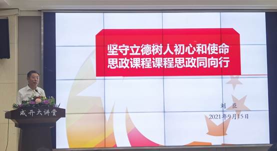 开班仪式后,刘臣为教师们带来了以《坚守立德树人初心和使命,思政课程课程思政同向行》为题的开班第一讲,他重点从课程思政新要求、新期待、新举措三个方面进行系统阐述:一是从习近平总书记关于立德树人的重要讲话和课程思政相关文件精神入手,理解“新时代立德树人新要求”;二是从新时代教师的责任与担当出发,明确“新征程教书育人新期待”;三是从开大教师要做对党忠诚的引路人、立德修身的大先生出发,立足于开放大学办学特色,结合具体课程思政案例,从多个方面提出“新使命为国育才新举措”。