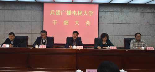 1月4日下午,兵团电大召开干部大会。兵团党委常委、副政委卢晓峰出席会议并讲话。兵团党委组织部张永强处长宣读任免通知。兵团电大新任党委副书记、校长金勇钢,新任党委委员、副校长万朝林表态发言。兵团电大党委书记吴新平、党委副书记任建军、纪委书记翁淑英以及内设机构全体干部及兵团民族师范学校校领导参加。