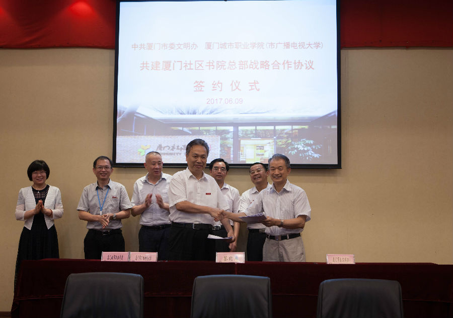 6月9日,厦门电大与中共厦门市委文明办正式签订战略合作协议,共建厦门社区书院总部。根据协议,厦门电大将汇聚全国职业教育、远程教育、终身教育优质资源,更好地提升厦门社区书院总部运作效率和服务质量。