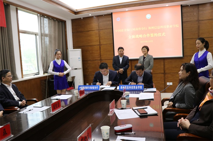 2019年10月22日,河南电大与中国建设银行河南省分行签署全面战略合作协议。河南电大校长赵继红,副校长马东斌、李小明,建行河南省分行行长、党委书记石永栓,副行长黄兴宏,以及双方相关单位或负责人参加仪式。签约仪式由马东斌主持。