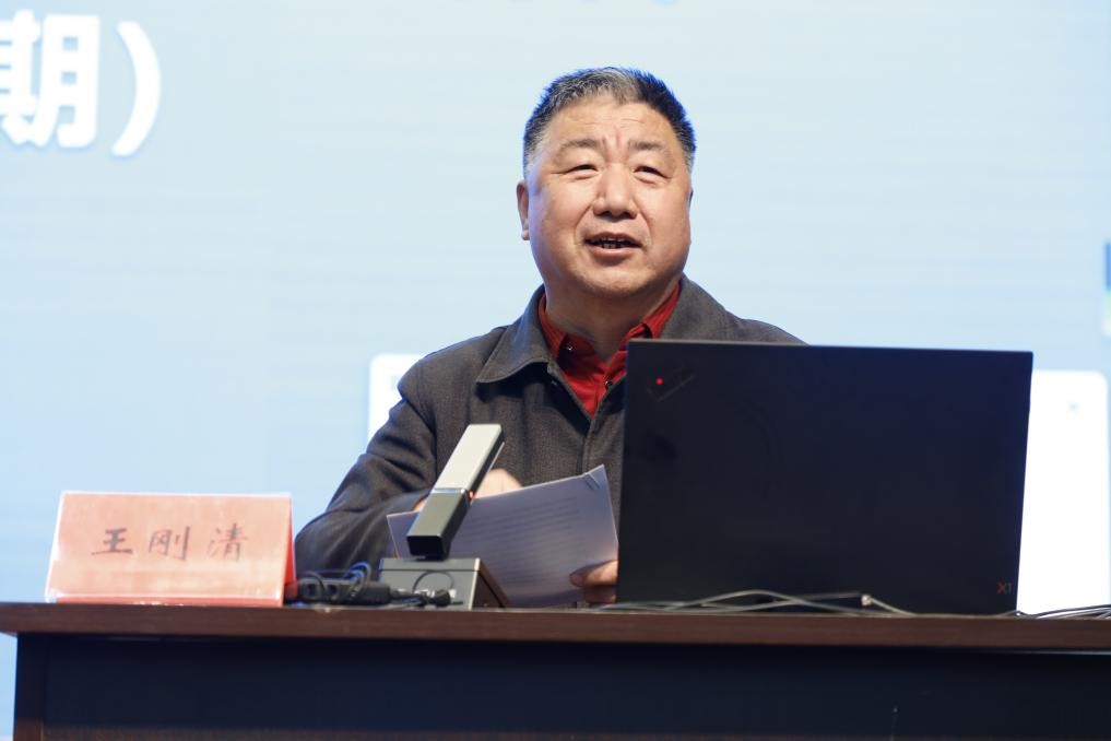 王刚清作动员讲话,他指出,本期培训聚焦DeepSeek数智化教育教学,将进一步深化教师对生成式人工智能在教学中的理解和应用,希望教师们能够珍惜此次学习机会,不断提升自身数智化学习资源制作水平,形成更具个性化、交互式的数智化教育教学能力。