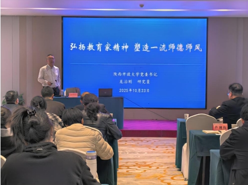 10月22日至24日,由省校主办、商洛分校承办的全省办学体系2025年度师德师风专题教育暨实践研修在商洛举办。校党委书记龙治刚出席开班式并作专题授课,商洛市人民政府副市长夏启宗出席并致辞,商洛市教育局长宋奇志、副局长杨占水参加活动,开班式由副校长王中锋主持。体系省市县三级办学单位部分领导、中青年教师代表和职能岗位业务骨干等共计120余名教师在商洛主会场参加现场学习,全省体系两千余名教职工通过线上直播分会场参加本次教育培训。