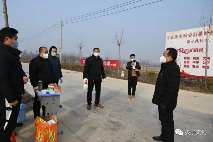 9点40分,晏乃军骑着电瓶车顺便到两个村民组巡查,看看有没有在外面聚集的村民。“书华,这两天你们辛苦了!”停下电瓶车,晏乃军老远就和晏围孜村民组长程书华打招呼。程书华正带着志愿者梁太福在小组的执勤点上值班,前几天,他们都为村里的疫情防控捐了款。