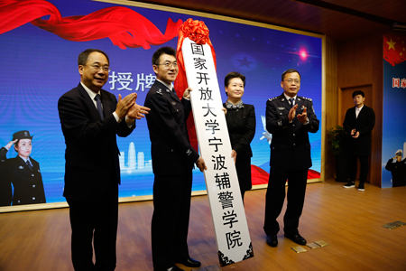 当日,国家开放大学校长杨志坚,宁波市委常委、市公安局局长黎伟挺,市人民政府副市长许亚南等领导出席学院揭牌仪式。