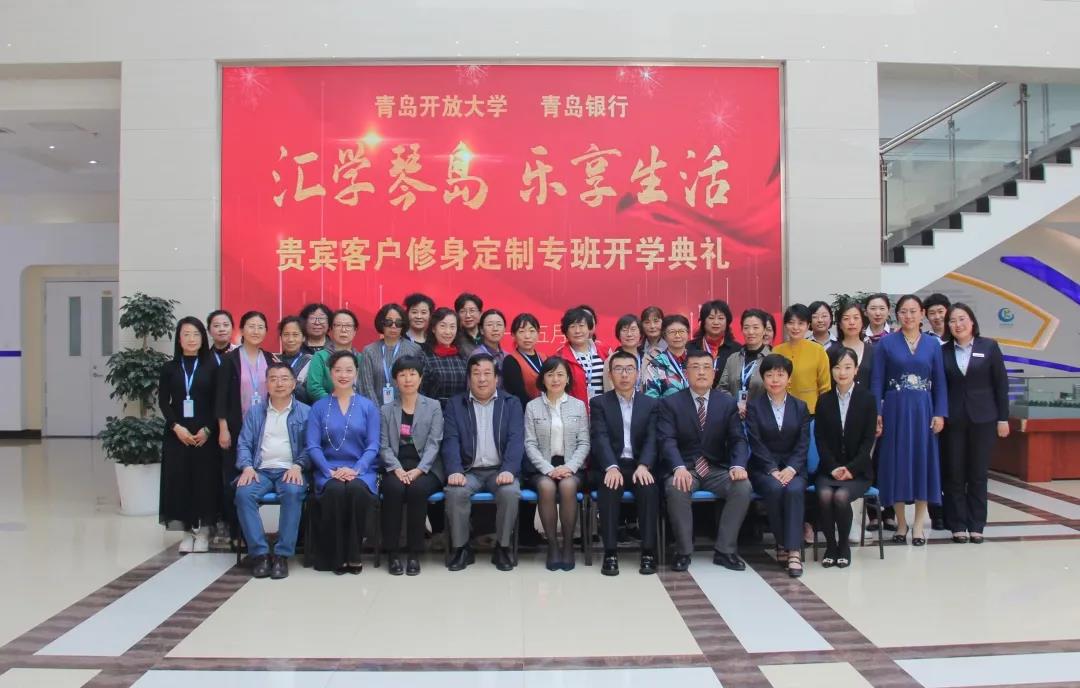 5月17日,青岛开放大学(青岛市社区教育指导服务中心)青岛银行“汇学琴岛乐享生活”贵宾客户修身定制专班举行开学典礼。