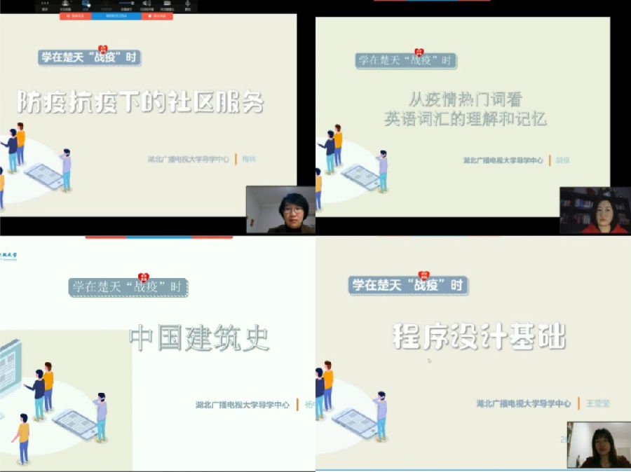 依托国家开放大学的技术支持,湖北分部本学期部署了600余讲云教室直播课。各地市州教学点通过网络进行教学安排,大力开展直播教学辅导,引导学生在家观看直播教学和开展网上学习。