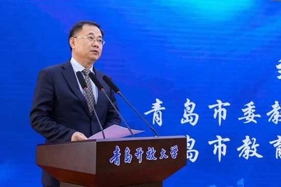 青岛市委教育工委常务副书记,青岛市教育局局长、党组书记刘鹏照宣读《山东省人民政府关于青岛广播电视大学更名为青岛开放大学的批复》。