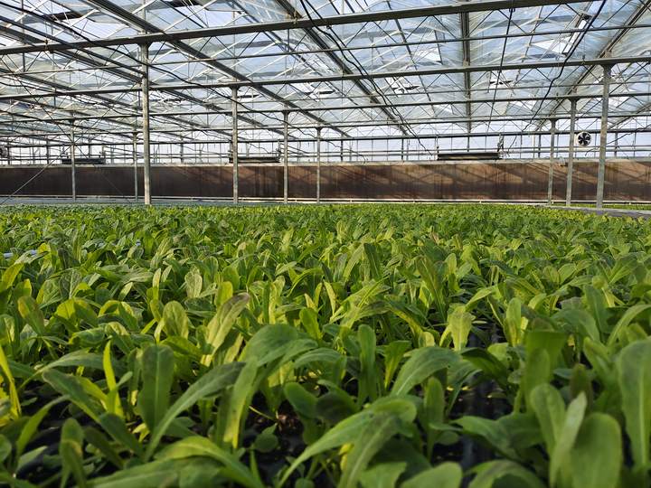 现代化的温室大棚、智能化的灌溉设备、绿油油的蔬菜……与外面的湿冷不同,吉园农业种植基地给人“春意盎然”的活力感。“现在外面温度大概10度左右,大棚里20多度,比外面要高10多度。这个季节种植的是莴笋,很快就要种西瓜。”辛宏权说。