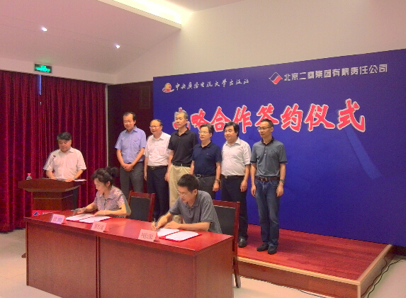 中共北京市委宣传部副巡视员梅松,中央广播电视大学出版社总编辑任岩、副总编李朔、副社长何勇军,北京二商集团董事长孙杰、总经理王瑶、党委副书记祝明京等出席签约仪式。(2016-08-25中国新闻出版广电网 作者:徐平)