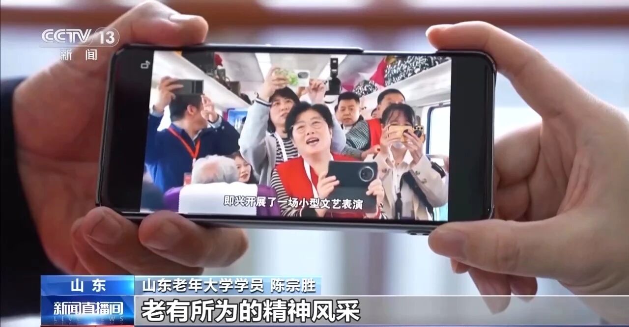 各地老年大学也在积极探索。去年春天,“齐鲁一号”旅游专列载着山东老年大学的百余位银发学子,开启了一趟“移动课堂”。