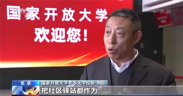 国家开放大学老年大学校长 刘臣:我们现在设想要跟中国(老干部)老年大学的体系进行融合发展,来扩大我们的学位。同时想依托于养老托老机构,依托于社区驿站,把社区驿站都作为国开大学教学的一个学习点。