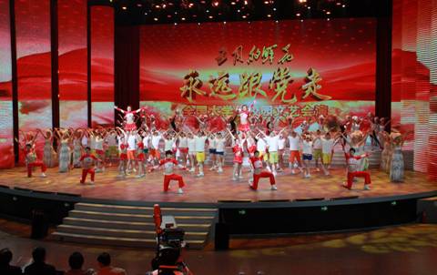 中国网 5月4日 报道 为庆祝中国共产党成立90周年,中央电大首次组团参演《五月的鲜花——永远跟党走》全国大学生校园文艺会演大型晚会, 5月4日晚8时 将在中央1套综合频道和3套文艺频道现场直播。来自天津电大的99名学生将在晚会上演出情景歌舞《春天的聚会》。