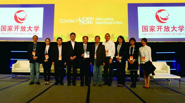2017年10月,国家开放大学获得ICDE“杰出机构奖”,杨志坚(中)接受奖牌