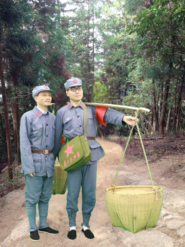 “这担粮食还挺重,革命先辈们这样挑来挑去挺不容易。”90后青年党员教师巫晓泉头戴红五星单军帽,身着灰色红军服,背着小挎包,腰扎皮带,腿缠绷带,听着《朱德的扁担》,体验井冈山挑扁担的场景。