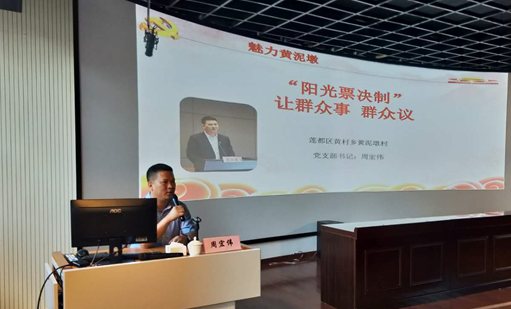 最近,莲都区黄村乡黄泥墩村党支部书记周宏伟以农民大学生新思想宣讲团成员的身份,受邀为全市农村基层党组织带头人(领雁人才)示范培训班学员宣讲习近平新时代中国特色社会主义思想,并分享乡村振兴故事和治理经验。