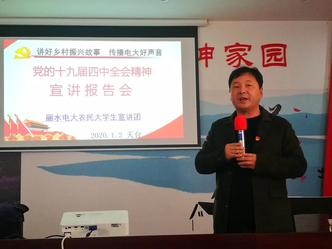 今年年初,宣讲团受邀为天台市街头镇张家桐村的干部群众作“十九届四中全会精神”主题宣讲。宣讲会上,缙云联丰村党支部书记楼干强通过本村小城镇环境综合整治“百日攻坚”活动,将一个“脏、乱、差”的村庄改造成为美丽“明星村”案例,向大家解读如何“以党建引领,加强基层治理有效性”的实战故事;莲都区郎奇村党支部书记马文华结合本村的实际,介绍了以规范制度为抓手,营造民主管理、民主监督的良好氛围促进乡村振兴的工作经验……