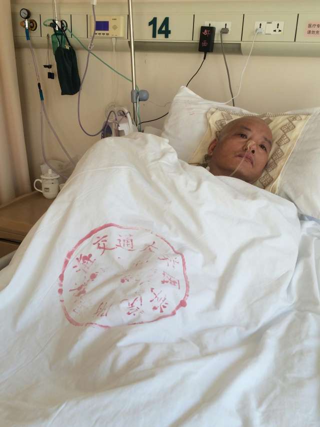 2月15日,郑元齐躺在上海一家医院的病床上。(新华社发)