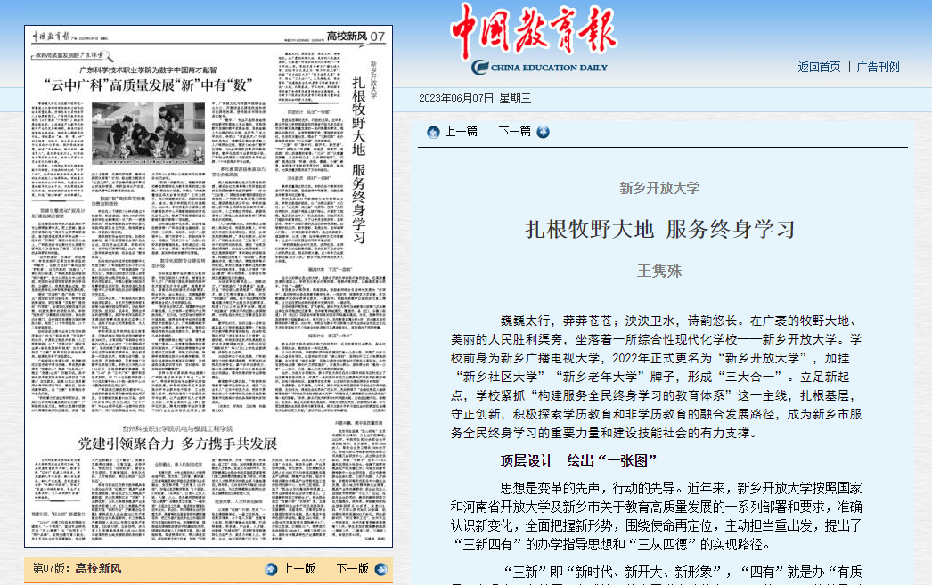 【中国教育报】新乡开放大学——扎根牧野大地 服务终身学习