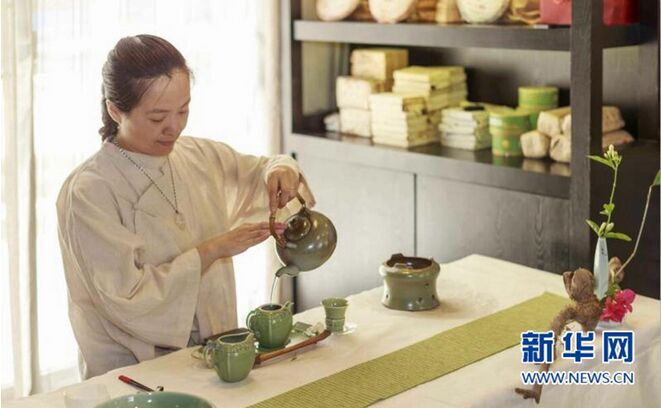 崔榕正在表演茶艺。“她的茶,四季分明,在香灵沉浮诉茶者情怀。”有朋友这么形容她的茶。