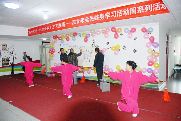 演出形式多样、精彩纷呈,节目达30个之多,既有慷慨激昂的配乐诗朗诵、轻快优美的舞蹈、低沉悠扬委婉的葫芦丝演奏、娴熟灵动的柔力球操,又有独唱、二重唱、小合唱,更有传承着中华民族博大精深文化的太极功夫表演、甘肃著名书法家书法作品的现场展示及书法绝活表演。每一个参演节目,每一个表演者都尽情歌颂赞美了伟大祖国及改革开放40年来的发展成果,歌颂赞美了终身学习理念带给我们的幸福生活。