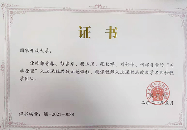 美育是素质教育的重要组成部分,对社会主义精神文明建设、全民审美素养提高具有重要意义。课程团队将持续进行课程思政融入审美教育的探索与实践,在教学中以美育人、以美化人、以美培元,大力弘扬中华美育精神,让学生有发现美的意识、鉴赏美的能力、创造美的理想。