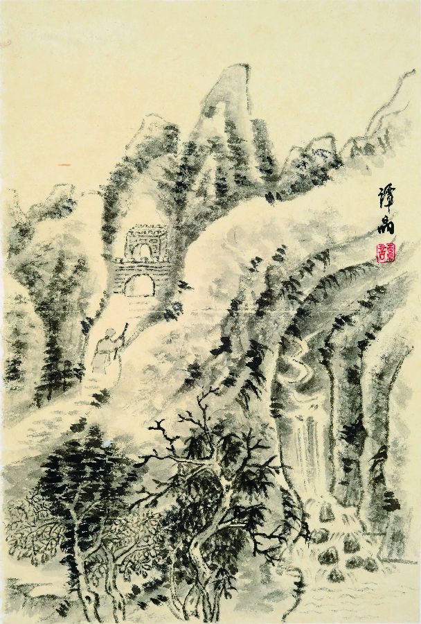 谭坚锋 拟愚公画意 纸本水墨 2018