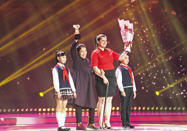 “心动安徽·最美人物”颁奖词这样描述她:一根拐杖,撑起倔强的躯体;一条板凳,跪对美丽人生;18年屹立讲台,一笔一划刻写师道尊严;桃李不言,下自成蹊,她用微笑告诉我们:汗水的收获更加甜美,低跪的姿态让梦想飞得更高!