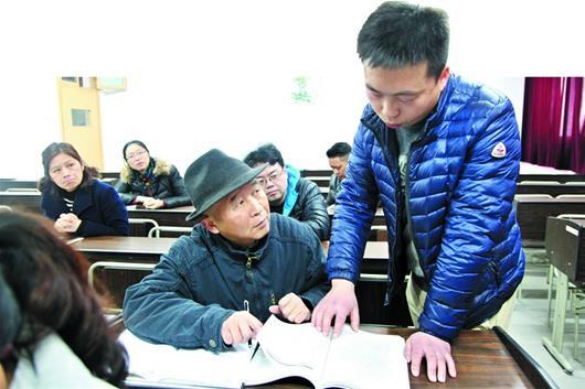 蒋虚怀的妻子在药店上班,他便劝她进修药学知识。有点畏难情绪的儿子说,“您带头把专业课考过了,我就报名!”去年底,蒋虚怀每门专业课都考过,儿子兑现承诺,今年也跟老爸一样报名参加了法学专业的学习。