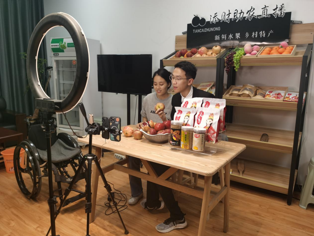 从残疾少年到励志榜样,杨添财不断挖掘自己在网络世界的无穷潜力。他依托电商平台进行水果等优质农产品销售,实现年突破1.23亿销售额,帮助500多户贫困户脱贫,助农增收300多万元。近年来,他逐渐转型直播带货,为更好地与新业态接轨、助推乡村振兴致富贡献力量。