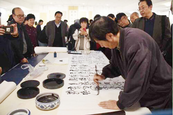 开展仪式上宣读了中国成人教育协会《关于第二届“美蕴秋歌——社区教育文艺成果展示”遴选结果的通知》,获奖学员代表魏殿平发表获奖感言。学员马秀英分享了书画学习的感受。书画作品展还特邀了甘肃省兰山印社理事、副研究员曹伟东及学校教师陈华、书画班任课教师乔军生和学员代表现场挥毫泼墨,赢得了参观者的阵阵掌声。