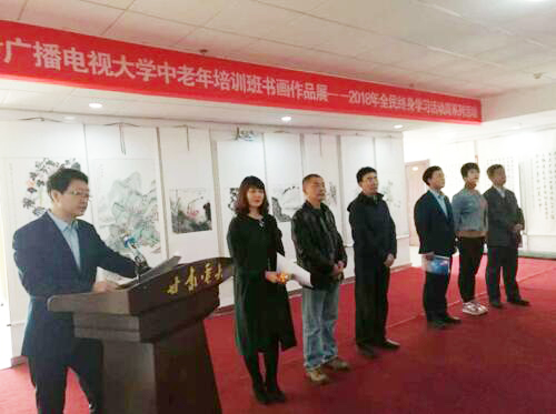 丹青异彩,翰墨飘香。2018年甘肃省“全民终身学习活动周”系列活动——“桑榆未晚·写意人生”甘肃电大中老年培训班书画作品展于2018年10月25日在甘肃电大开展,展期1个月。副校长王旭强出席开展仪式并致辞。