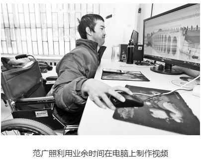 惊讶源于由衷的赞叹。因为大家都知道,范广照的身体不同常人,因患重度脑瘫,他出行离不开轮椅,抬头、伸手都很困难,说话也不流畅。