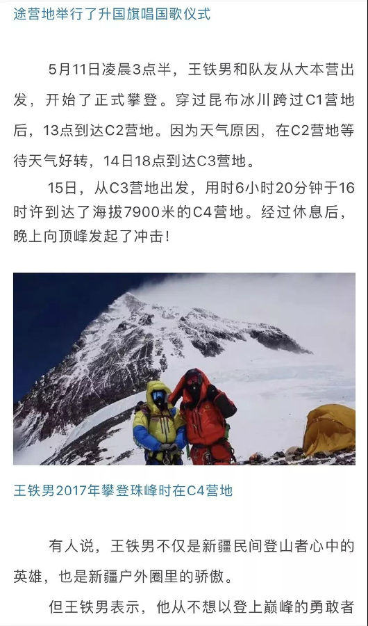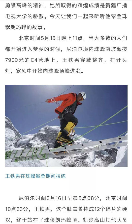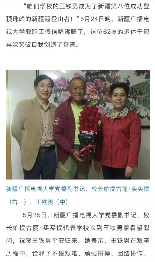 新疆电大62岁教职工王铁男两攀珠峰终登顶