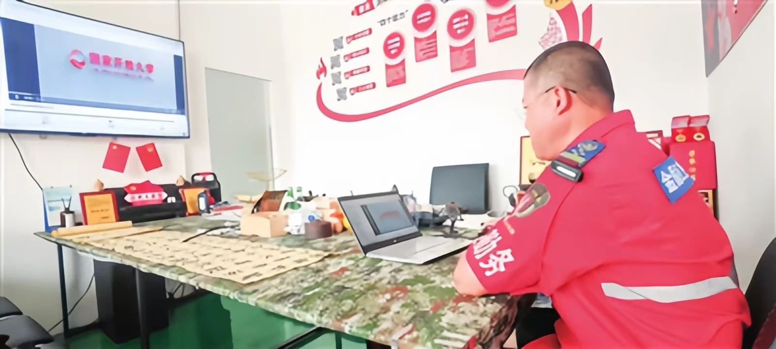 “家庭用电、用火涉及安全问题,不要以为自己经常使用就有麻痹思想!”7月28日上午,在城阳区咸康路一处小区,青岛金盾应急救援队队长赵建飞和同事给社区居民和物业工作人员作了家庭用电注意事项课堂培训后,又将大家拉到小区空地现场讲解火灾救援知识。这样一个整日奔走于应急救援公益培训的“大忙人”,又抽出时间报读了青岛开放大学书法学专业。49岁的赵建飞,为什么要在这个年龄段去学习?他是如何兼顾事业与学业的?在青岛开放大学的学习,给他带来了哪些变化?待赵建飞赶往下一场公益讲座的间隙,青岛早报记者进行了采访。