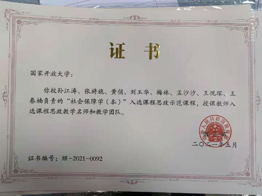 【课程思政示范课】孙江涛团队《社会保障学(本)》