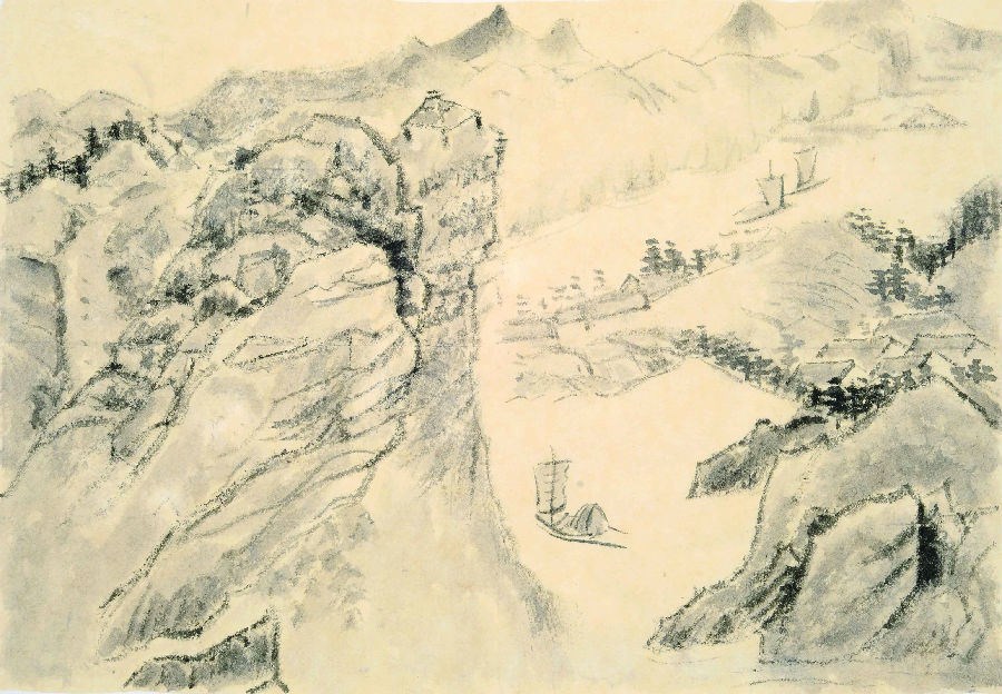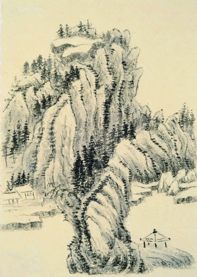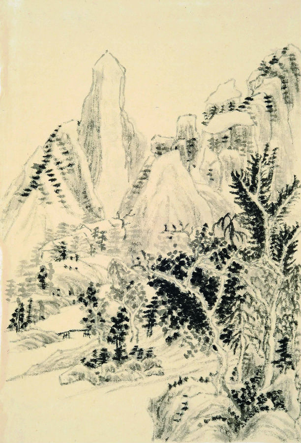 哈萨 溪山风雨图册之一 纸本水墨