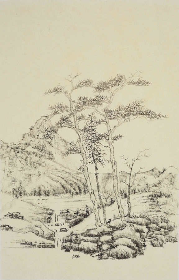 黄岩 拟云林意 纸本水墨