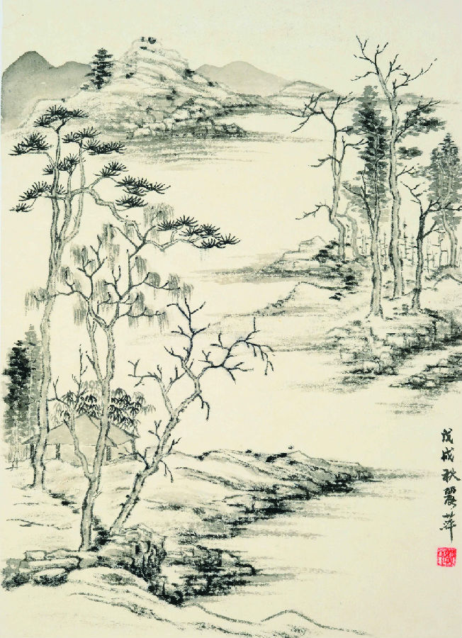 郭文杏 董其昌画意 纸本水墨