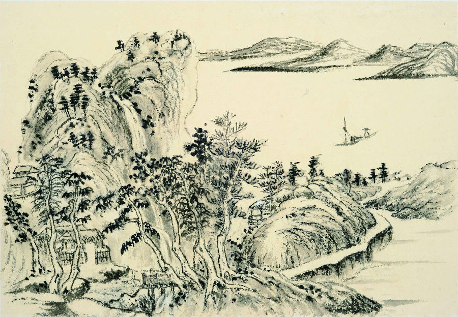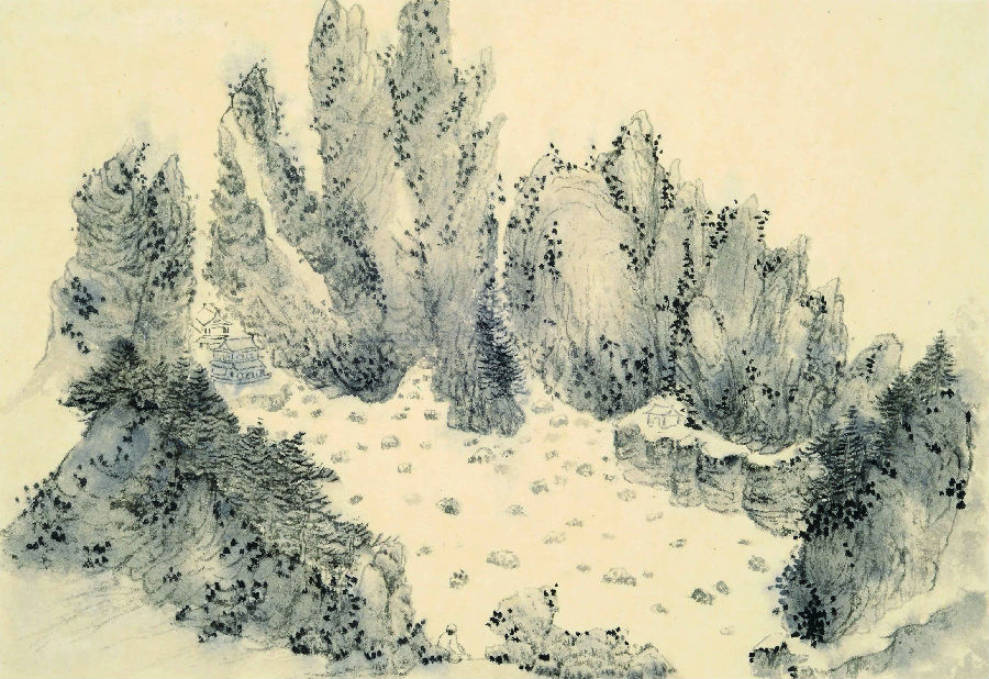 薛梅 溪山风雨图册之一 纸本水墨 2018
