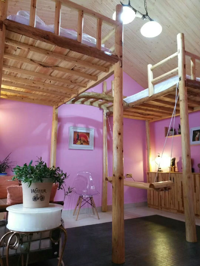 走进禾飘香,3层半的民楼,层层有特色、间间不一样。有海洋,有森林,有木屋,有日式闺蜜房、浪漫情侣房、卡通家庭房等。二楼主间内,老板更是将其妻子的嫁妆全部摆上橱柜,温馨堪比婚房。顶层的民宿风采和鹊桥相会两间房最具特色,全是木制装饰,其中一间的装饰全部是洪和漂就地取材手工制作,木制酒架充满了人性化设计,床头的灯架也是上山寻来的“缘来之木”。另外一间是颇有名气的情侣房“鹊桥相会”,房间里的两张床都在上铺,床与床之间是一座弯曲的木制小桥,“鹊桥相会”由此得名。