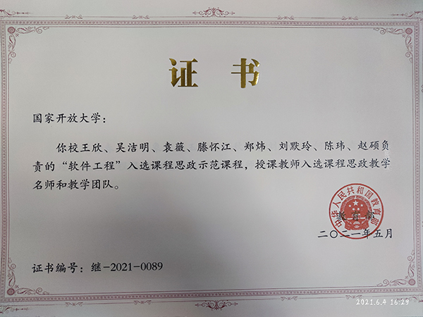 编者按:近日,教育部公布课程思政示范项目名单,包括课程思政示范课程699门、课程思政教学名师和团队699个、课程思政教学研究示范中心30个。国家开放大学《政治学原理》《动物常见病防治》《美学原理》《软件工程》《社区护理学(本)》《运输管理实务》《社会保障学(本)》《推销策略与艺术》等8门课程入选继续教育类课程思政示范课程,古小华、赵燕飞、郭青春、王欣、唐已婷、王艳丽、孙江涛、刘志敏等8个教学团队入选课程思政教学名师和团队。