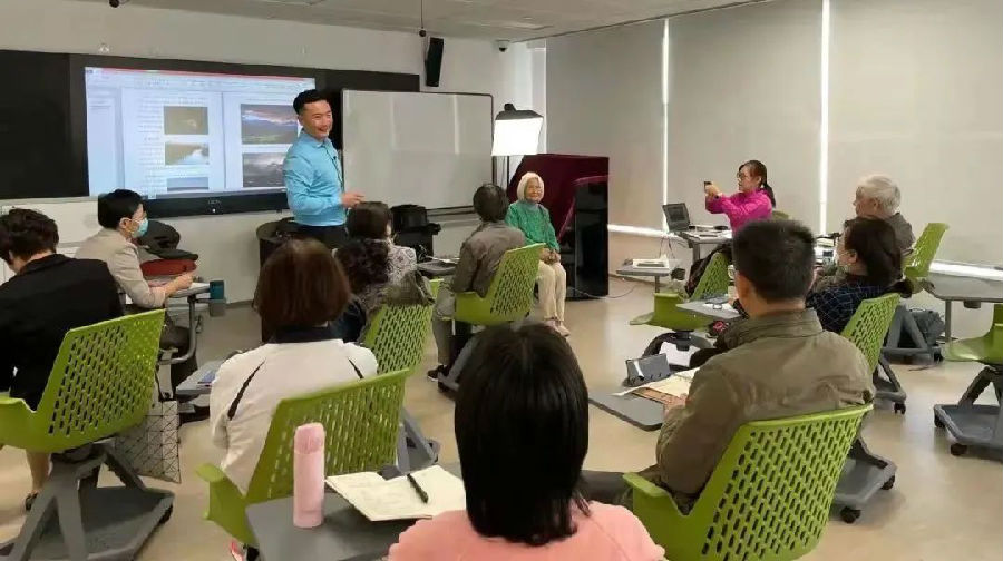 虽然岁月奔腾,但身处朝气蓬勃的校园文化中,朱孝琪还是那个活力四射的元气女孩。国开老年大学魏公村校区作为老年教育实体办学示范校区,充分运用现代化设施,开展了线下教学和线上课程直播等多种形式的教学活动,并引导师生构建了充满知识与乐趣的课堂氛围与融洽的人际关系。
