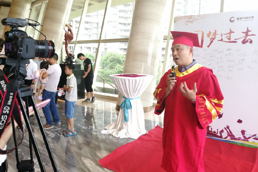 国家开放大学副校长林宇接受“南方工报”(省工会报纸)和佛山市电视台采访