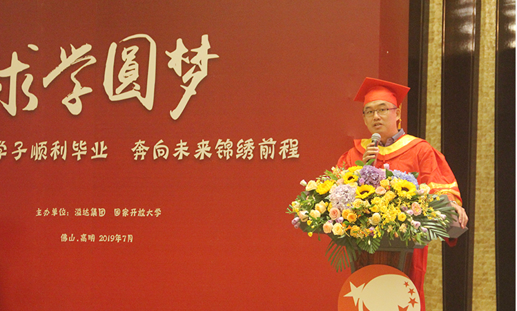 近日,国家开放大学“求学圆梦行动——溢达助力计划项目”首届毕业典礼在佛山市高明区举行,国家开放大学副校长林宇参加毕业典礼、致辞并为优秀毕业生颁发毕业证书。