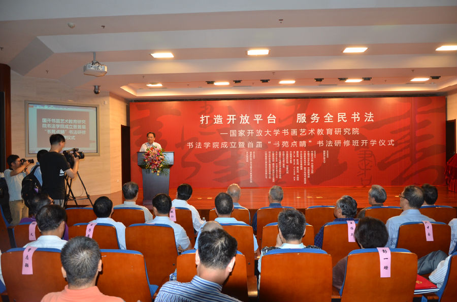 9月17日上午,国家开放大学书画艺术教育研究院书法学院成立暨首届“书苑点睛”书法研修班开学仪式在国家开放大学总部举行。